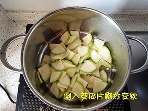 (2)锅中加入适量清水,放入茭瓜片,大火烧开后转小火煮5分钟。